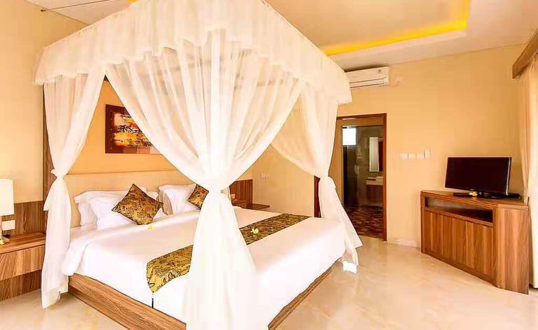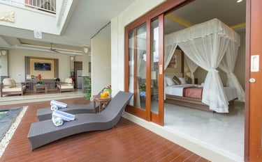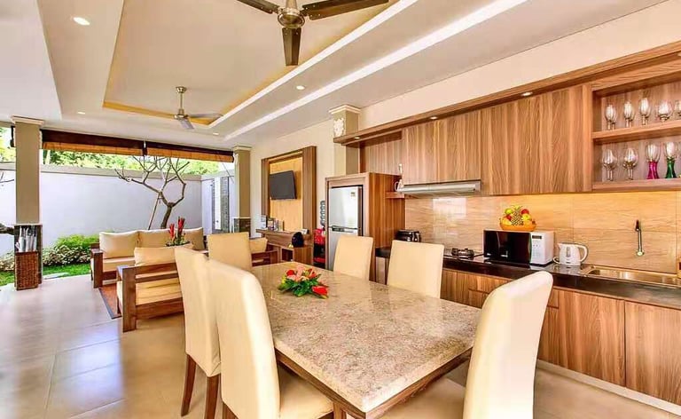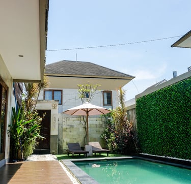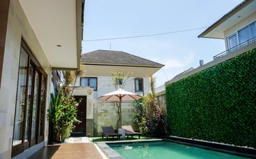 A modern Balinese-style private pool villa, perfect for small families, travelers, or working couples. Located near the main road, 30 minutes to airport, 5 minutes to Jimbaran beach, 15 minutes, close to tourism spots, very strategic location, it offers a secluded environment and excellent connectivity.